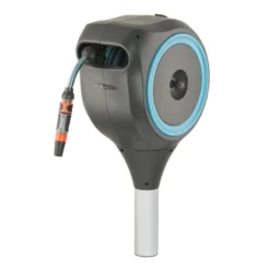 - Enrouleur compact, positionnable partout dans le jardin grâce au pic et qui pivote à 360°.